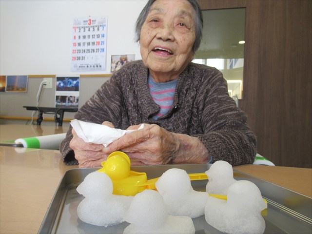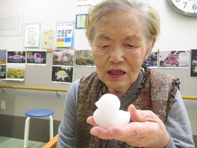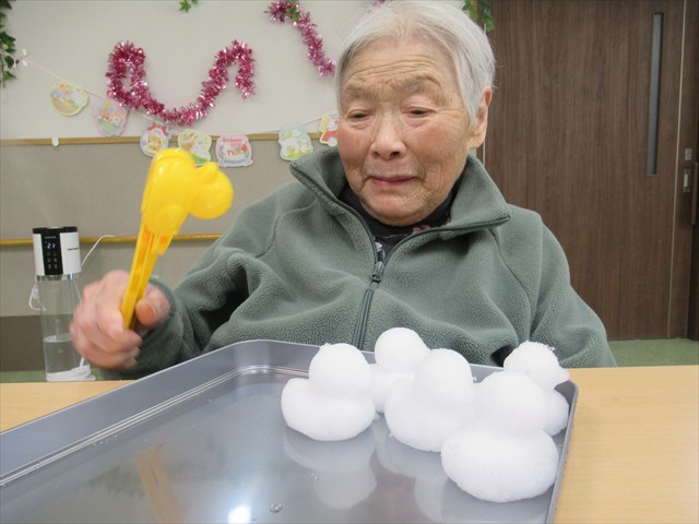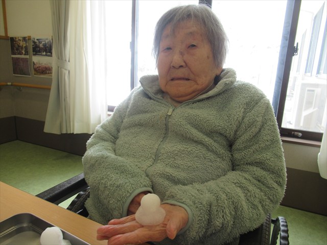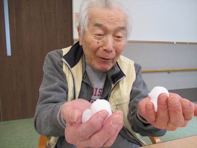 Tさん「あら、雪かい。」 指でツンツンして楽しそうでした。