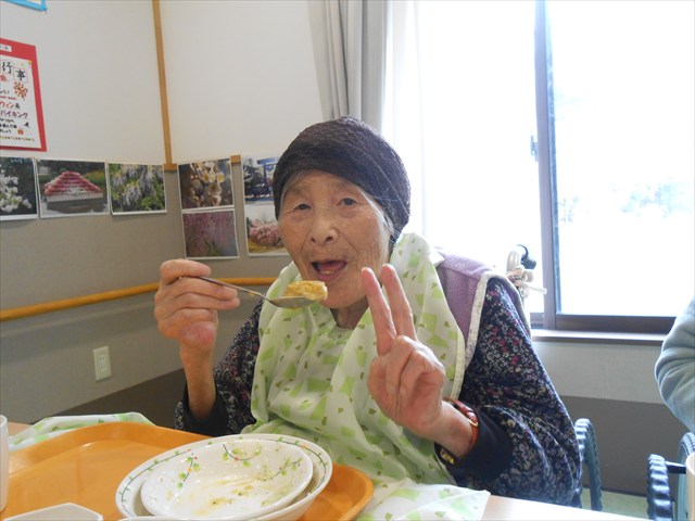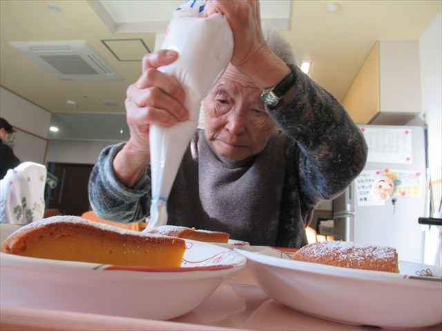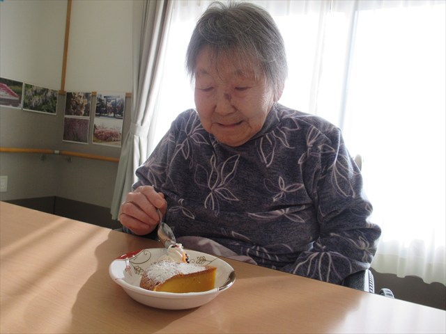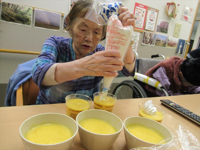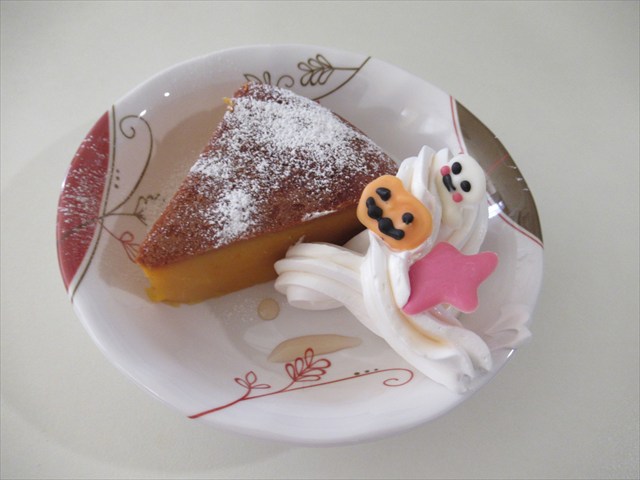 『かぼちゃケーキ』、嚥下機能に不安がある方は『かぼちゃプリン』を提供しました。