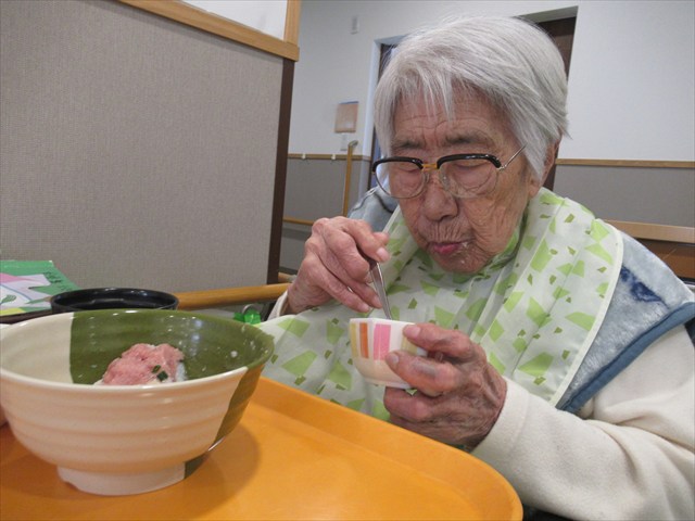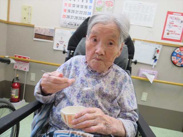 ちょうどお昼時にテレビでも七草粥の話題をやっていて「風邪ひかないで、元気にすごそうね。」とOさん。 「美味しいよ~。」と笑顔で召し上がっていました。