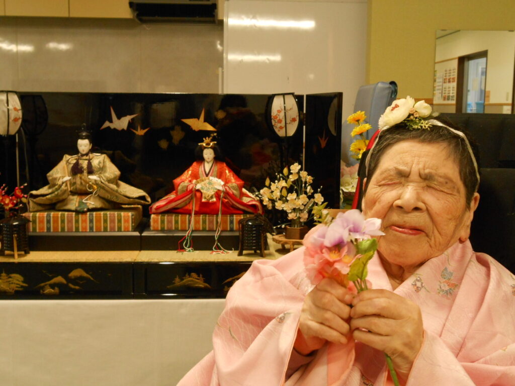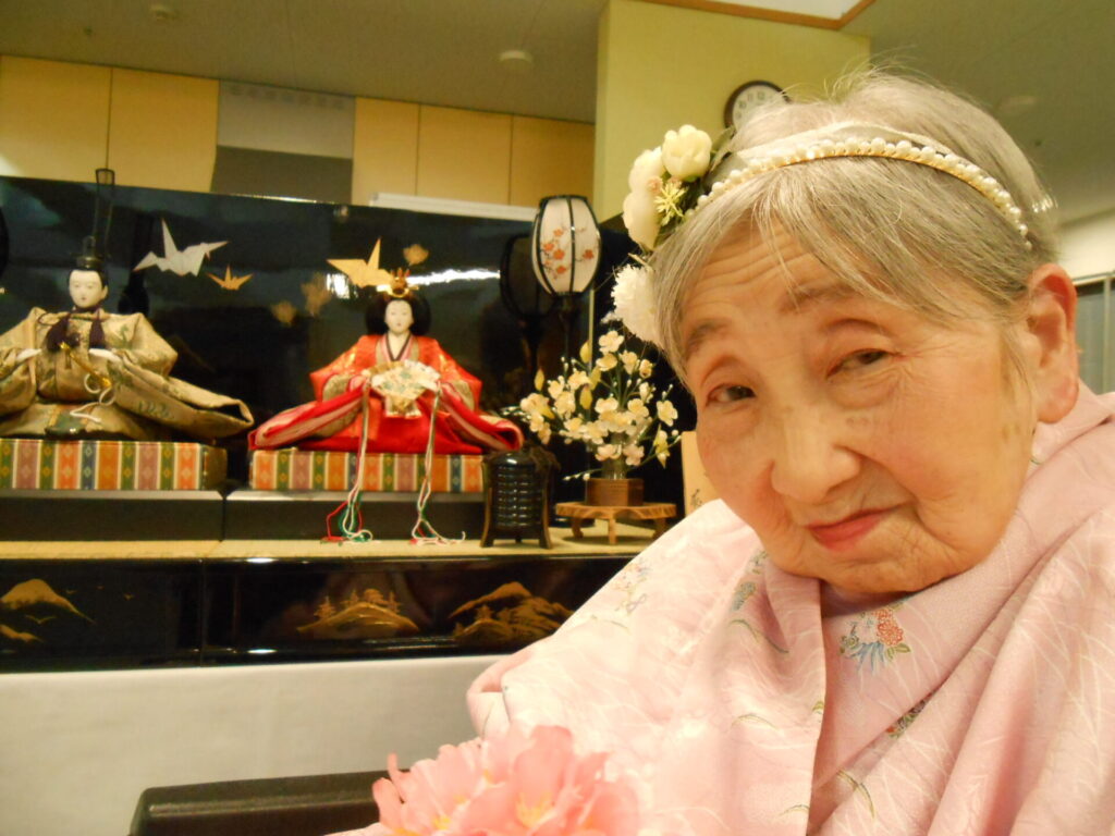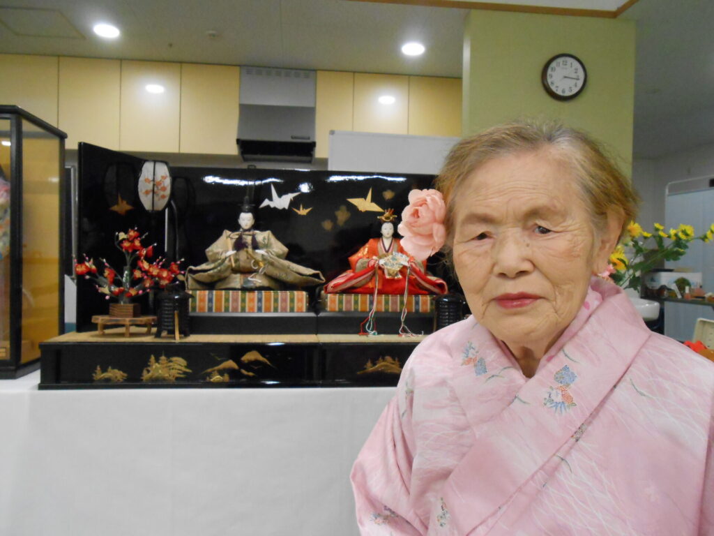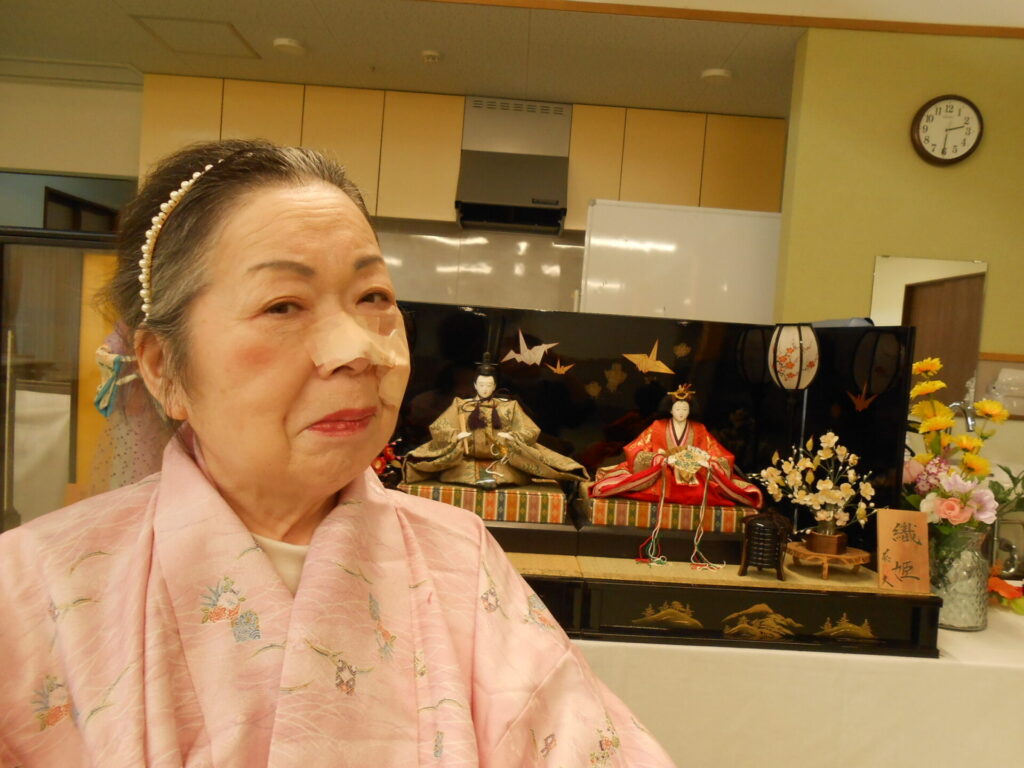 お化粧とヘアセットをしてひな人形と一緒に写真撮影を行いました🌸