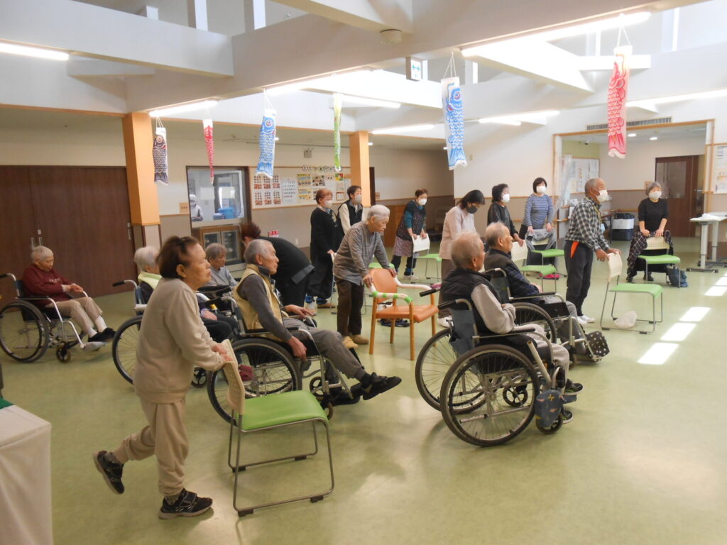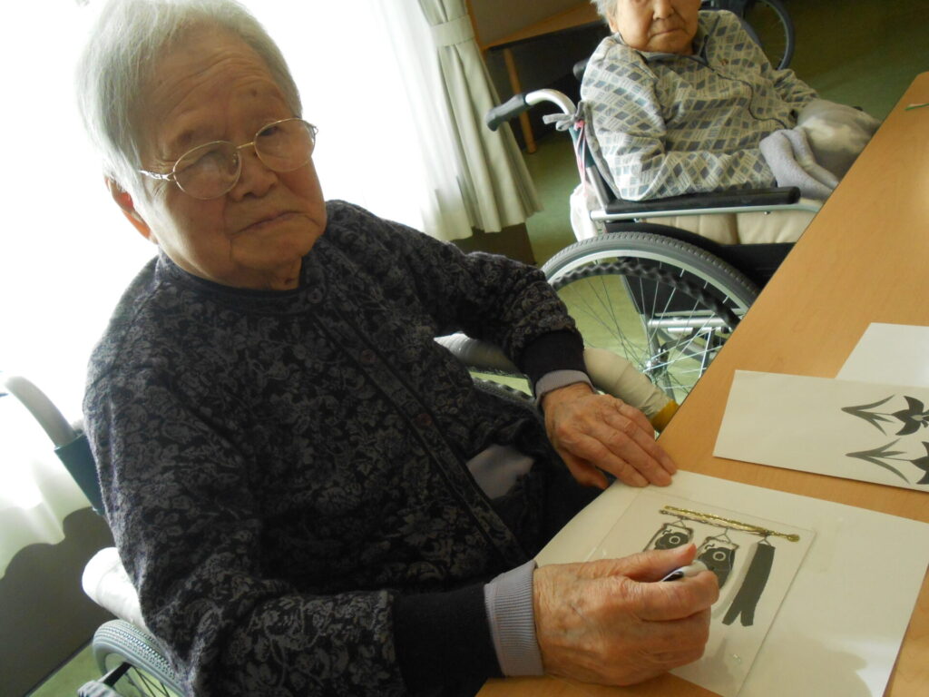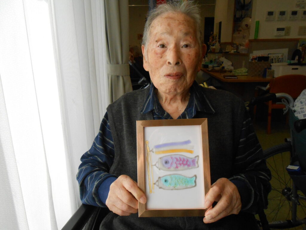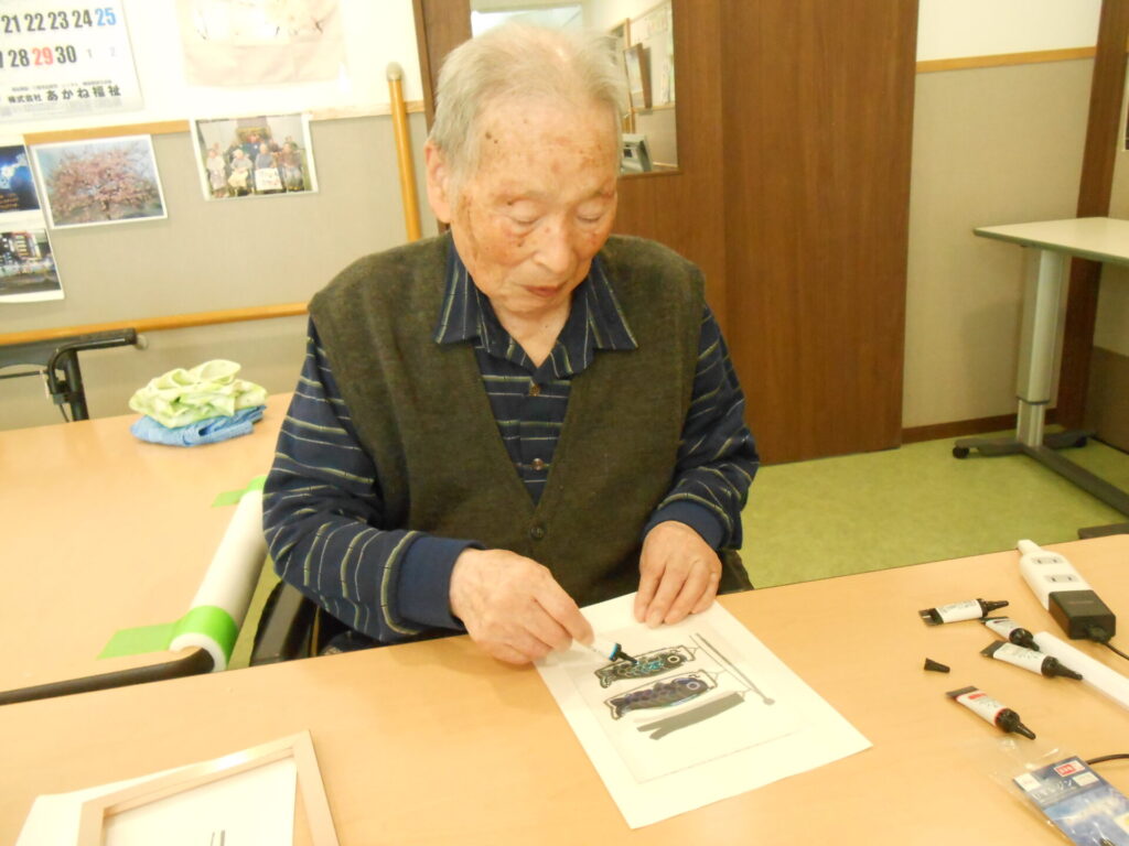 それぞれ好きな色で色付けをしてオリジナルのこいのぼりが出来上がりました🎵