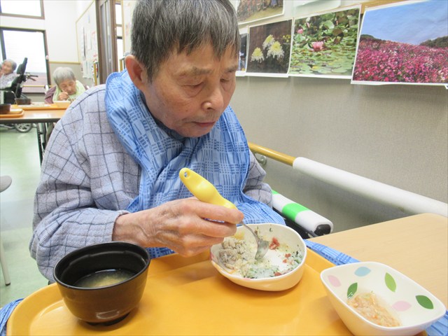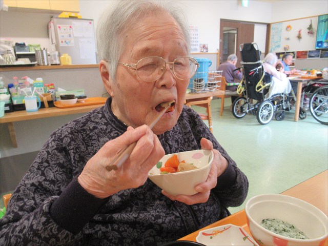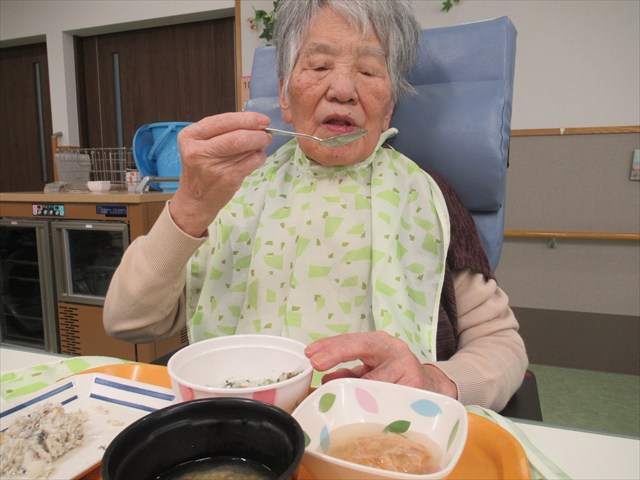 ちょうどお昼時にテレビでも七草粥の話題をやっていて「風邪ひかないで、元気にすごそうね。」とOさん。 「美味しいよ~。」と笑顔で召し上がっていました。