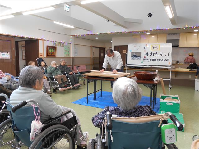 ななかまどユニットIさんご家族のご厚意で、今年もそば打ち実演会を開催しました。