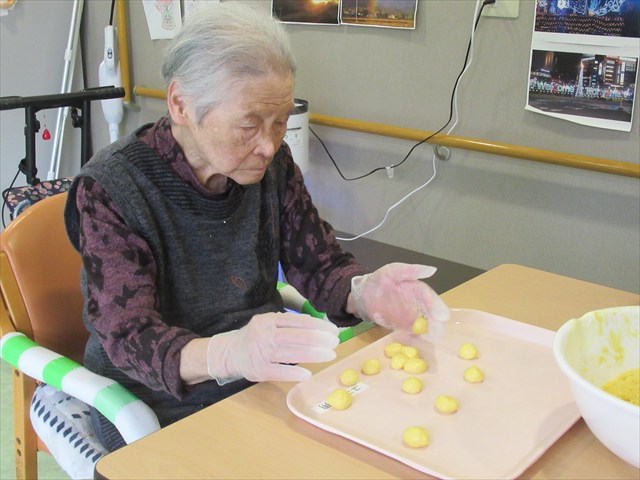 今月のおやつ作りは【かぼちゃ団子】を作りました。