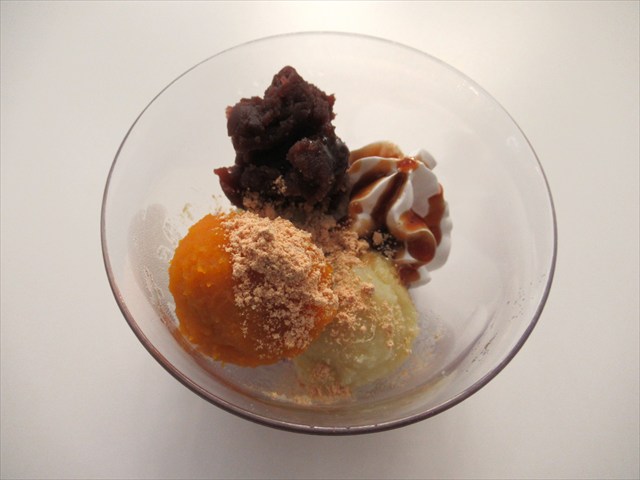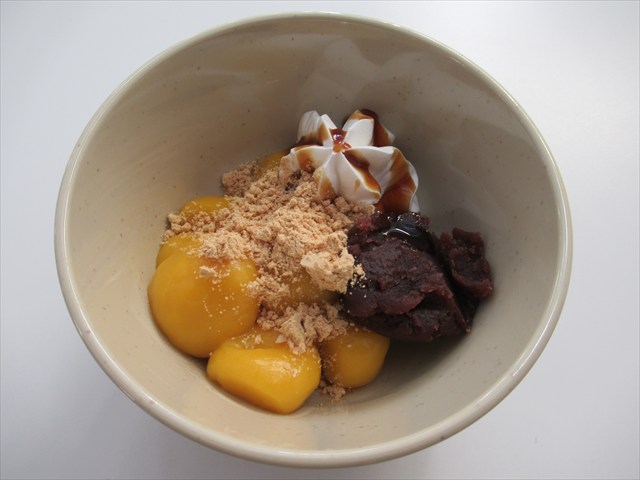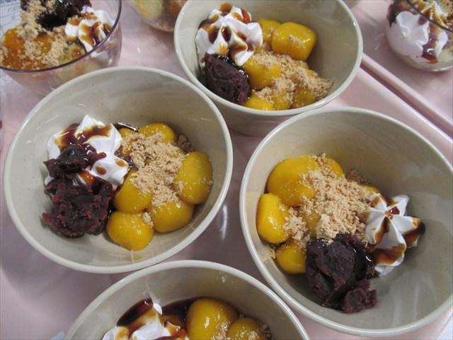 団子が食べられない方には、かぼちゃとさつまいもを茹でて丸めたものを代替えしました。