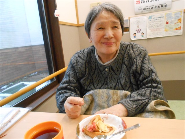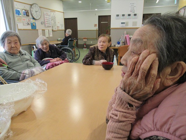 ちょうどお昼時にテレビでも七草粥の話題をやっていて「風邪ひかないで、元気にすごそうね。」とOさん。 「美味しいよ~。」と笑顔で召し上がっていました。