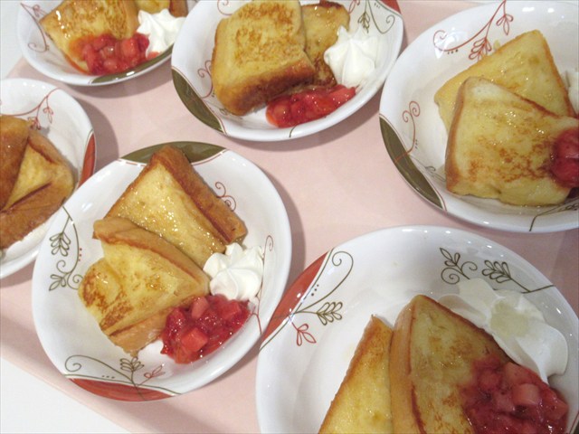 卵と砂糖、牛乳を混ぜ、食パンを浸します。