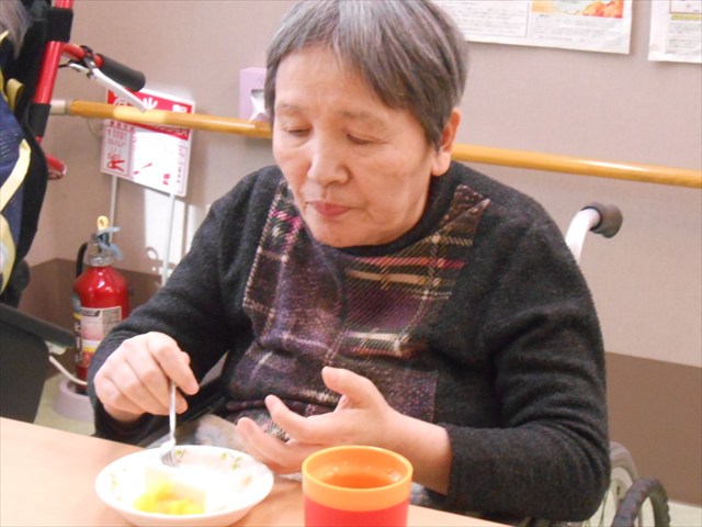 シチュー、フルーツヨーグルトもあり、お腹いっぱいです。