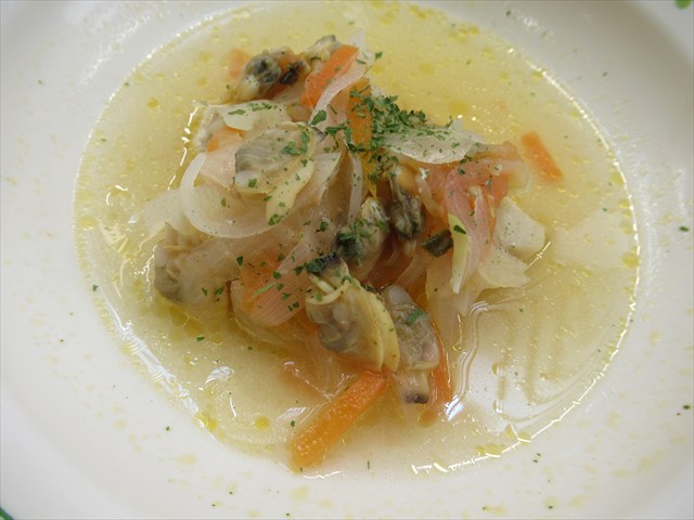 ごはん、アクアパッツァ、大根サラダ、煮豆、みそ汁